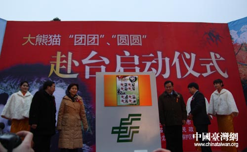 12月23日,四川雅安碧峰峽基地舉行大熊貓赴臺啟動儀式。儀式上,“團團”、“圓圓”個性化郵票及珍藏冊揭幕。 中國臺灣網(wǎng) 田云鵬 攝
