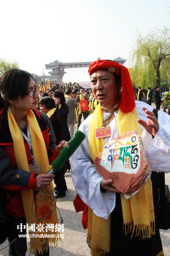 一位少數(shù)民族參會者在展示他帶來的祈福藝術(shù)品。(中國臺灣網(wǎng)馬迪攝)