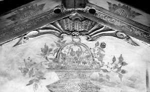 在鐘家老宅,最引人注目的是彩繪的裝飾畫面,大門墻楣的卷冊、門楣上方隔斷的兩側(cè)、前堂的山墻和次間內(nèi)側(cè)墻楣,隨處可見。畫面最豐富的彩繪在前堂山墻門楣,有人物,有花草,有松柏,有耕牛,有雄雞,有喜鵲,有松鼠,有鷹隼,有亭子,有廊橋,不一而足。閻根齊總結(jié)了這些景物的含義:主要反映了“樵漁耕讀”和“亭臺樓閣”2個(gè)主題,可見主人的高尚追求和美好向往。