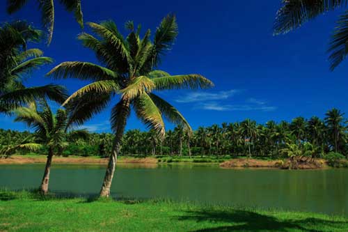 東郊椰林:位于文昌市東郊鎮(zhèn),與著名的清瀾港相鄰,這里是椰樹的王國,身處其中時,不管把視線投到哪里,都能看到高矮不等、斜直各異、婆娑多姿的樹林。這里有50多萬株椰樹,有紅椰、青椰、良種矮椰、高椰、水椰等。椰子水被當?shù)厝朔Q為天水,清甜甘美。