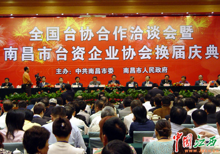 22日上午,全國(guó)臺(tái)協(xié)合作洽談會(huì)暨南昌市臺(tái)資企業(yè)協(xié)會(huì)換屆慶典在江西飯店舉行。圖為慶典現(xiàn)場(chǎng)。(中國(guó)江西新聞網(wǎng)記者 王凱 攝)