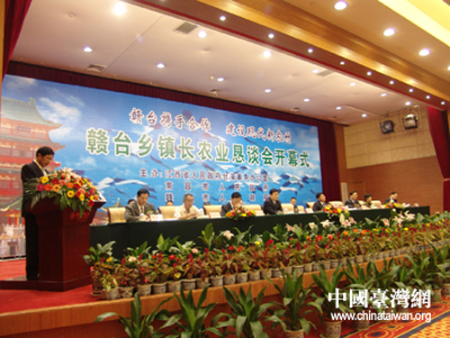 中國臺灣網(wǎng)6月26日南昌消息 昨日,以“贛臺攜手合作,建設(shè)現(xiàn)代化新農(nóng)村”為主題的2007贛臺鄉(xiāng)鎮(zhèn)長農(nóng)業(yè)懇談會在南昌正式開幕。本次懇談會由江西省臺辦、南昌市政府和贛州市政府共同主辦。兩地與會人員將參觀特色農(nóng)業(yè)園區(qū)和新農(nóng)村建設(shè)點(diǎn)、座談交流鄉(xiāng)鎮(zhèn)建設(shè)和農(nóng)業(yè)開發(fā)經(jīng)驗(yàn),并制訂長期合作交流協(xié)議。