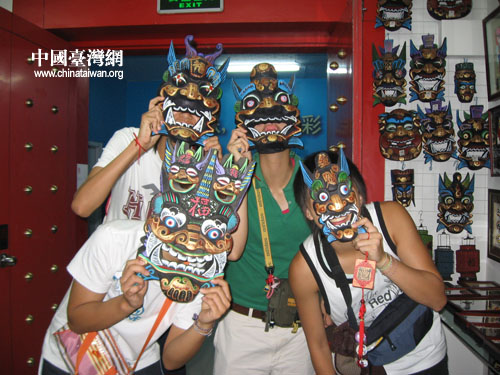 看到墻上各種各樣的面具,調皮的臺灣學生紛紛拿起來戴上拍照