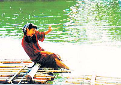客家勞動(dòng)?jì)D女,從來(lái)不纏小腳。上山下坡扎扎實(shí)實(shí);踩在田里穩(wěn)穩(wěn)當(dāng)當(dāng);立在排上,不怕灘險(xiǎn)水急,象一個(gè)沖鋒陷陣的將軍;站在水里便是中流砥柱?图遗讼潞酉匆乱埠芴貏e,不是蹲在岸邊,而是站在水里,臉朝岸上,眼觀八方,關(guān)注著房前屋后。這是客家人早年高度戒備傳下來(lái)的習(xí)慣,別有一番風(fēng)韻。