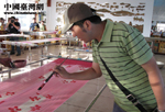寥寥數(shù)筆 漂亮的手繪披肩就呈現(xiàn)在記者眼前