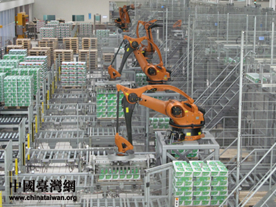 中國臺灣網(wǎng)7月23日呼和浩特消息 海峽兩岸記者聯(lián)合采訪團(tuán)昨天走進(jìn)了內(nèi)蒙古自治區(qū)明星企業(yè)伊利集團(tuán)的生產(chǎn)車間,集團(tuán)副總裁胡利平向記者介紹了伊利集團(tuán)近年來的發(fā)展情況。(張弛 攝)