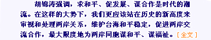 胡錦濤就兩岸“三通”講話。兩岸春節(jié)包機(jī)航班確定。贈(zèng)臺大熊貓乳名揭曉。