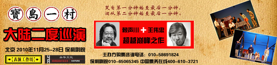 | 賴聲川和王偉忠,這兩個名氣響亮的創(chuàng)意人,將首次攜手合作,他們將以不同于以往眷村劇的創(chuàng)作概念與表現(xiàn)手法,推出舞臺劇《寶島一村》,談的是「族群」雖然存在,但不應(yīng)是問題;「融合」或許需要時間,但總能找到因應(yīng)之道。 兩個頂尖創(chuàng)意人的合拍推動,讓《寶島一... |