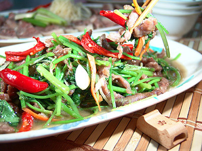 酥炸類的溪產(chǎn)搭配九層塔、胡椒鹽的酌料一起入口,口感酥脆相當(dāng)下飯;而用風(fēng)味獨(dú)特的山芹菜下鍋一起炒的山豬肉,除了山豬肉的鮮嫩滋味,還能感受山芹菜的清脆口感與辛香風(fēng)味,而采用當(dāng)天現(xiàn)宰現(xiàn)賣、秉持新鮮與原味的招牌鵝肉料理也值得品嘗,皮嫩肉甜的味道,不游不膩的口感,加上特制的醬汁,入味好吃,嘗一次就會(huì)上癮,是許多內(nèi)行的食客每來(lái)必點(diǎn)的料理。