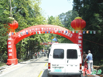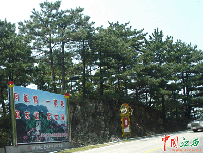 “同胞情,一家親;敘友誼,促發(fā)展!9月11日,1176名臺(tái)灣客商紛紛來到廬山,參加2005年贛臺(tái)(九江 廬山)經(jīng)貿(mào)合作研討會(huì)。這是在中部地區(qū)最大規(guī)模的一次臺(tái)商聚會(huì)活動(dòng)。圖為上廬山時(shí)沿途可見研討會(huì)標(biāo)識(shí)。(中國江西網(wǎng)記者 王光忠 攝)