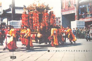 很遺憾這個舉世聞名的民間盛會自從民國二十五年(公元1936年)后至八十年代就沒有再舉辦過。但是值得欣慰的是公元1988年,天津舉辦了首屆民俗文化博覽周活動,在古文化街的宮前文化廣場小規(guī)模地組織了這種民間花會的展示。特別是公元2001年的首屆中國?天津媽祖文化旅游節(jié),才使皇會從真正意義上得到了弘揚(yáng)。