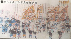 另外,還有就在清康熙三十一年(公元1691年),“圣祖幸天津謁天后宮”時,民間作百戲以獻(xiàn)神,又籍此以娛帝,故有“皇會”之稱。
