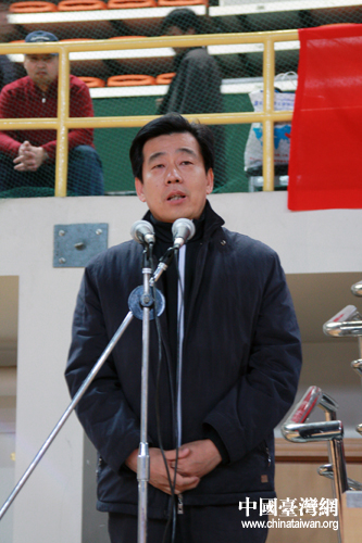 國臺辦經(jīng)濟局副局長劉軍川宣布第三屆北京“臺商杯”球類比賽開幕(鐘寶華 攝)