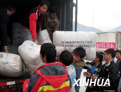 當日,海峽兩岸和諧發(fā)展基金會向四川阿壩藏族羌族自治州中等職業(yè)技術學校捐贈2624床棉被,并將繼續(xù)提供防寒服、燒水鍋爐、體育器材等援助。四川阿壩藏族羌族自治州茂縣是汶川地震極重災區(qū)之一,坐落在該縣的阿壩州中等職業(yè)技術學校在地震中設施嚴重損毀。新華社記者 楊三軍 攝