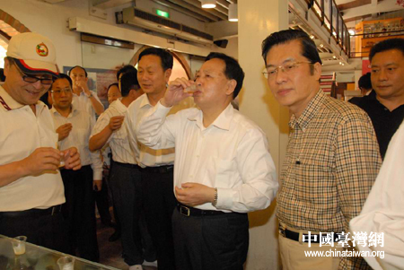 羅清泉在苗栗縣大湖鄉(xiāng)品嘗草莓酒。(中國(guó)臺(tái)灣網(wǎng)湖北通訊員 陸勝 攝)