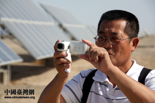 臺(tái)灣記者劉朝發(fā)在敦煌市太陽(yáng)能產(chǎn)業(yè)園區(qū)拍攝。(中國(guó)臺(tái)灣網(wǎng) 郜利敏 攝)