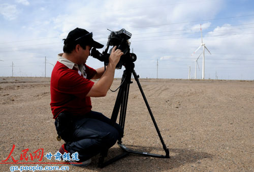 臺灣中國電視公司記者在瓜州風電場拍攝