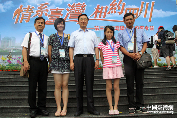 劉奇葆與前來參加第三屆“臺灣學生天府夏令營”活動的一家合影留念。(中國臺灣網(wǎng) 王偉 攝)