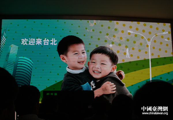 臺北市長郝龍斌也和小朋友們一起,通過宣傳片歡迎人們來到臺北館。(中國臺灣網(wǎng) 張弛 攝)