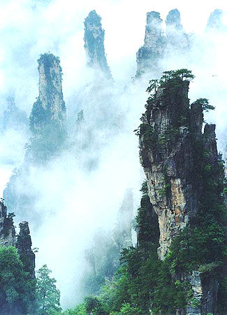 武陵源風(fēng)景區(qū)位于湖南省西北部,由張家界市的張家界森林公園、慈利縣的索溪峪自然保護(hù)區(qū)和桑植縣的天子山自然保護(hù)區(qū)組合而成,總面積500平方公里。最近又發(fā)現(xiàn)楊家界新景區(qū)。武陵源風(fēng)景區(qū)是80年代初“新發(fā)現(xiàn)”的“養(yǎng)在深閨人未識(shí)”的深山明珠。這里的砂巖峰林千奇百怪,似人似物,惟妙惟肖,在那靜謐的幽谷里,沒有任何人工雕鑿,有的是石柱石峰、斷崖絕壁、古樹名木、云氣煙霧、鳥鳴蟬噪、流泉飛瀑、珍禽異獸,人行其間,猶如到了一個(gè)神奇的世界和風(fēng)味天成的藝術(shù)山水長廊。