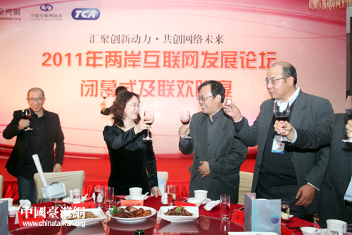 與會(huì)嘉賓在閉幕式及聯(lián)歡晚宴上舉杯致意。(中國(guó)臺(tái)灣網(wǎng) 王思羽 攝)