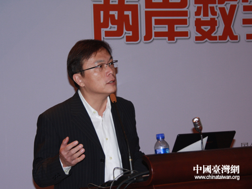 昱泉國際營運長凌明源在兩岸數(shù)字內(nèi)容及產(chǎn)業(yè)孵化論壇上作主題演講(中國臺灣網(wǎng) 高斯斯 攝)
