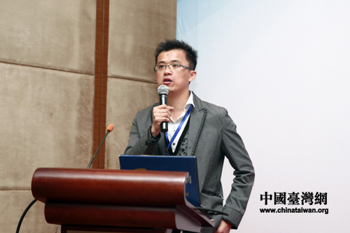 2011年兩岸互聯(lián)網(wǎng)發(fā)展論壇第二分論壇“兩岸移動(dòng)互聯(lián)網(wǎng)發(fā)展論壇”昨(15)日在北京福朋喜來登大酒店舉行。圖為極致行動(dòng)科技總經(jīng)理連建欽做主題演講。(中國臺(tái)灣網(wǎng) 趙輝 攝)