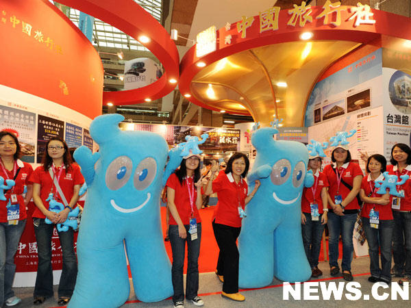 10月30日,上海世博會(huì)吉祥物“海寶”亮相海峽兩岸臺(tái)北旅展。
