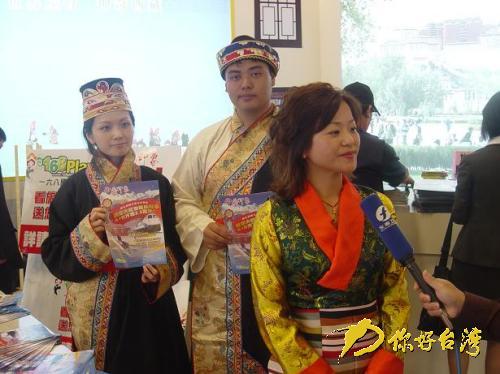 在大陸展區(qū)里,各省市代表團(tuán)爭(zhēng)相凸顯各自的旅游特色,山光水色濃縮在展區(qū)當(dāng)中,讓人目不暇接。圖為西藏旅游屆代表接受臺(tái)灣媒體采訪。