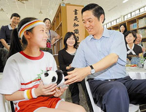 5月26日上午,中共四川省委書記劉奇葆率“天府四川寶島行”參訪團一行到臺灣南投縣埔里小學(xué),考察學(xué)校災(zāi)后重建情況,并邀請臺灣中小學(xué)生今年暑假到四川參加夏令營。