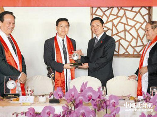 劉奇葆(右二)出席四川省感謝臺灣社會各界援助“5·12”地震災(zāi)區(qū)見面會,向臺灣救援隊、醫(yī)療隊、志愿者、援建單位代表和新聞單位的朋友贈送抗震救災(zāi)紀(jì)念章。圖片來源:四川省臺辦