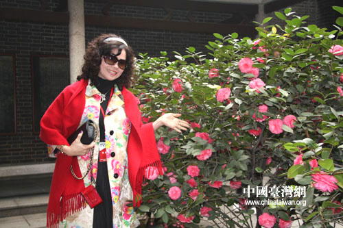 參訪團(tuán)成員在院內(nèi)盛開(kāi)的花木前留影(李杰 攝)