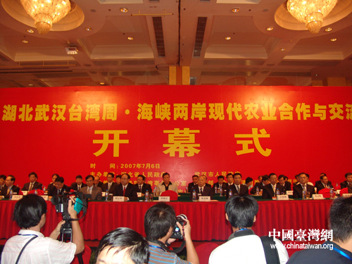 2007年7月6日-11日,第四屆湖北武漢臺灣周在武漢舉行。此次活動以“海峽兩岸農(nóng)業(yè)交流與合作”為主題,吸引了兩岸400余嘉賓參與,會上達成的漢臺兩地農(nóng)業(yè)合作項目17個計15億元。(攝影:陳寧)