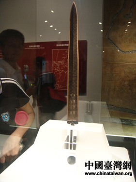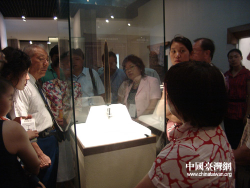 臺灣團(tuán)成員細(xì)細(xì)端詳傳說中的越王勾踐劍。(攝影:陳寧)