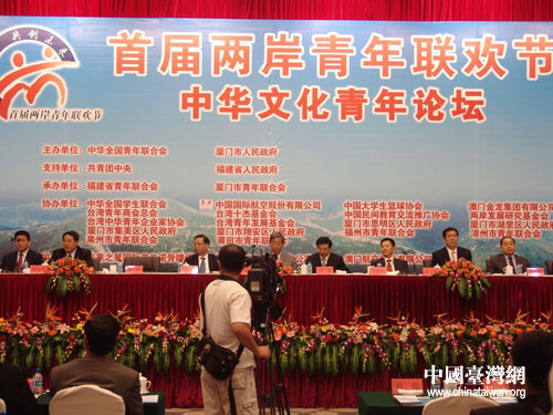 中華文化青年論壇標志首屆兩岸青年聯(lián)歡節(jié)正式開幕,全國人大常委會副委員長許嘉璐、團中央書記處第一書記周強、福建省省長黃小晶、國務院臺辦副主任葉克冬等出席論壇。