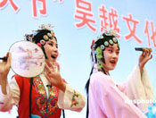 兩名蘇州青年昆曲演員在“兩岸青年聯(lián)歡節(jié)”上表演昆曲《牡丹亭》選段。