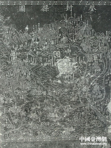 嵩陽(yáng)書(shū)院明代石刻“登封縣地圖”,刻于萬(wàn)歷癸巳年(公元1593年),圖上詳細(xì)刻制著嵩山地區(qū)名勝古跡的分布情況和山川、河流、道路、村鎮(zhèn)等名稱,是登封文物分布圖,又是登封縣地圖。登封縣文物名勝盡管志書(shū)都有記載,但用地圖形式直接描述的,僅此一塊登縣石刻地圖。(中國(guó)臺(tái)灣網(wǎng) 徐維彬 攝)
