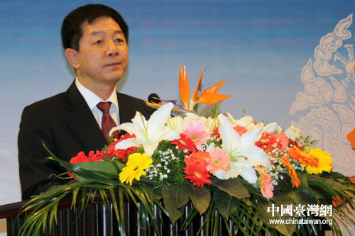 中共中央臺(tái)灣工作辦公室、國(guó)務(wù)院臺(tái)灣事務(wù)辦公室副主任葉克冬在“第七屆海峽兩岸中華傳統(tǒng)文化與現(xiàn)代化研討會(huì)暨首屆海峽兩岸醫(yī)學(xué)文化與醫(yī)學(xué)發(fā)展論壇”致辭。(中國(guó)臺(tái)灣網(wǎng) 董潔 攝)