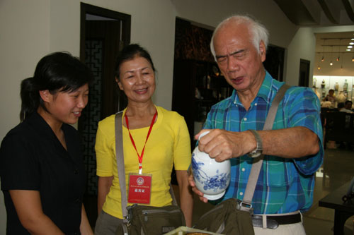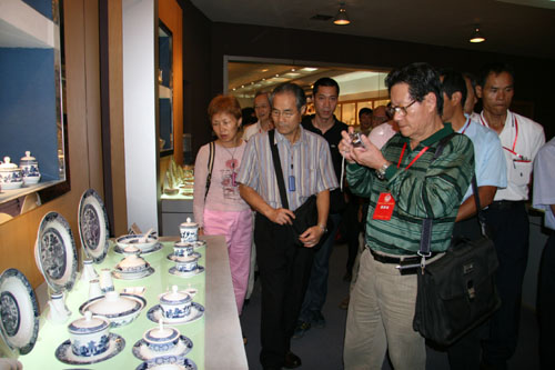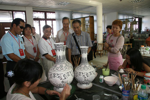 中國臺(tái)灣網(wǎng)8月30日景德鎮(zhèn)消息 剛剛參加完2007贛臺(tái)(南昌)經(jīng)貿(mào)合作研討會(huì)的臺(tái)灣區(qū)電信工程同業(yè)公會(huì)前理事長、大吉電話材料有限公司董事長廖大吉和臺(tái)北市臺(tái)海兩岸經(jīng)貿(mào)文教交流協(xié)會(huì)榮譽(yù)理事長、百徽股份有限公司董事長楊祥傳等35名臺(tái)商客人,今天下午在景德鎮(zhèn)臺(tái)辦領(lǐng)導(dǎo)等人陪同下,先后到當(dāng)?shù)刂沾善髽I(yè)--景德鎮(zhèn)陶瓷股份有限公司,景德鎮(zhèn)雕塑瓷廠以及景德鎮(zhèn)國際陶瓷文化交流中心參觀考察。(黃建文)