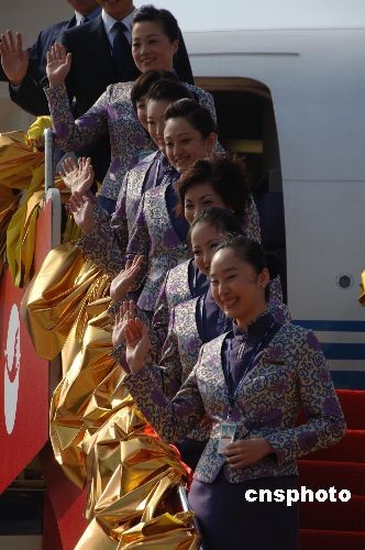 12月18日,擔(dān)任福州至臺北直航包機空中勤務(wù)的空姐,著新式服裝上崗。 中新社發(fā) 鄭祚聲 攝