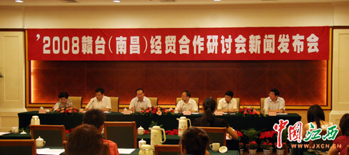 9月2日,由國務(wù)院臺(tái)灣事務(wù)辦公室和江西省人民政府共同主辦的“2008年贛臺(tái)經(jīng)貿(mào)合作研討會(huì)”新聞發(fā)布會(huì)在昌召開。(江西網(wǎng)記者 何淳勇 攝)
