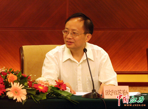省委外宣辦、省政府新聞辦主任歐陽蘇勤主持新聞發(fā)布會(huì)。(江西網(wǎng)記者 何淳勇 攝)
