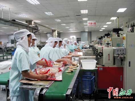 在上工前,工人們要經(jīng)過三道清潔關(guān)的檢驗(yàn),方可入內(nèi)操作。(江西網(wǎng) 王建亮 攝)