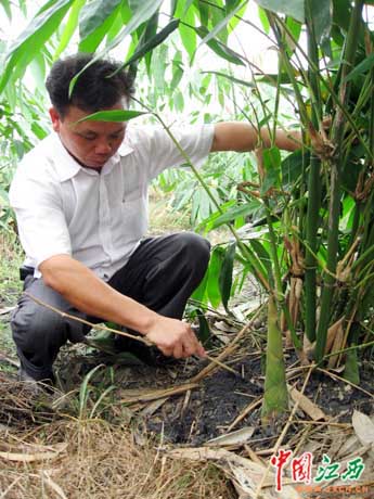 用附近電廠的廢料澆灌麻綠筍,循環(huán)利用資源。(江西網(wǎng) 王建亮 攝)