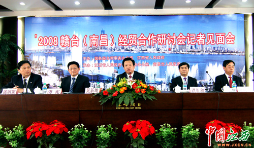 9月21日下午,2008年贛臺(南昌)經(jīng)貿(mào)合作研討會記者見面會在南昌舉行。圖為見面會現(xiàn)場。(江西網(wǎng)記者 鄧小勇 攝)