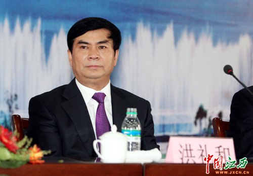 副省長洪禮和出席見面會并向到場的80多家媒體通報了研討會的基本情況。(江西網(wǎng)記者 鄧小勇 攝)