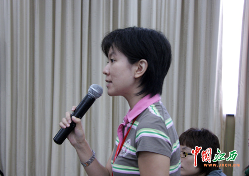 鳳凰衛(wèi)視記者在記者見面上提問。(江西網(wǎng)記者 何淳勇 攝) |