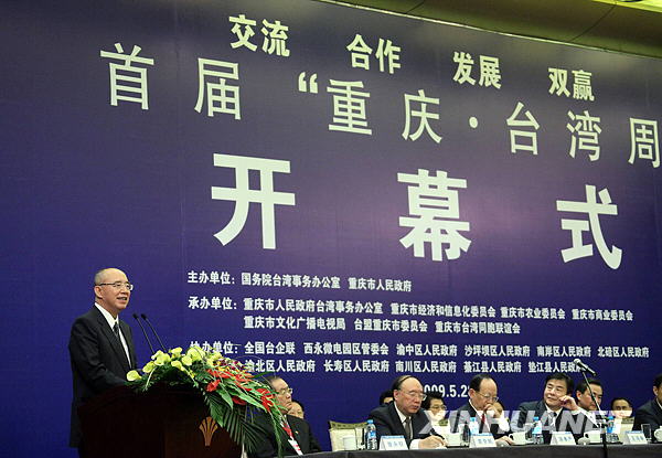 5月28日,中國國民黨主席吳伯雄在“重慶·臺灣周”開幕式上致辭。當(dāng)日,首屆“重慶·臺灣周”在重慶開幕。首屆“重慶·臺灣周”由國務(wù)院臺灣事務(wù)辦公室、重慶市人民政府共同主辦。新華社記者 邢廣利 攝