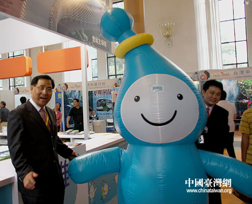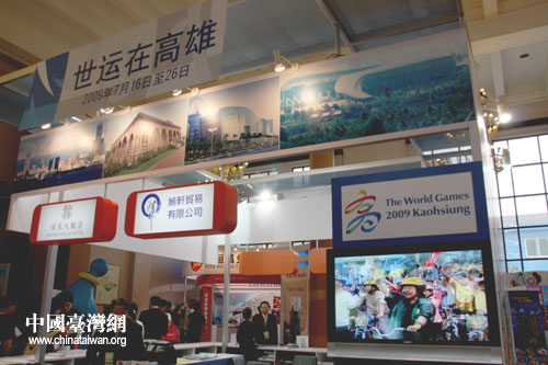 走進(jìn)臺(tái)灣館,第一個(gè)看到的就是高雄市展臺(tái)。作為2009世界運(yùn)動(dòng)會(huì)主辦城市的高雄,今天特地來到北京參加國際旅游博覽會(huì)。高雄市政府觀光局局長林昆山還跟世運(yùn)會(huì)吉祥物一道發(fā)出熱情的邀請:高雄熱忱友善地歡迎好朋友們到高雄來。