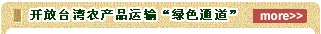 為了擴(kuò)大和深化兩岸農(nóng)業(yè)合作,為了把這次論壇的成果盡快的落到實(shí)處,我受財(cái)政部、農(nóng)業(yè)部、商務(wù)部、交通部、國土資源部、海關(guān)總署、工商總局、稅務(wù)總局、質(zhì)檢總局、國家林業(yè)局等部門的委托,將我們共同研究制定的一系列新的政策措施宣布如下: